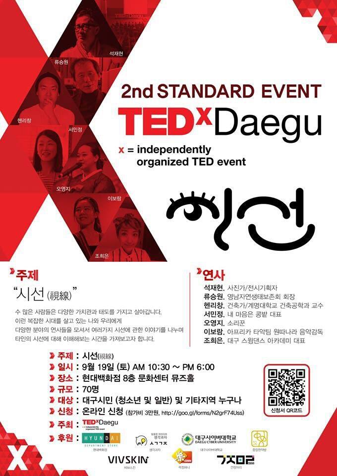 Dr. Henry Tsang spoke at TEDxDaegu 2015 held at the Hyundai Cultural Hall. The topic of the TedTalk was “Can Architecture Heal?”, looking at the relationship between architecture and health.